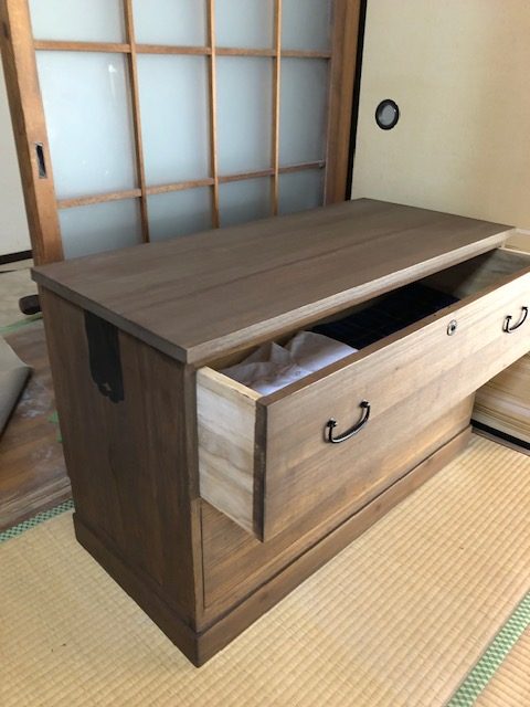 もとの桐箪笥存在感は活かしつつ、現代の暮らしに合う家具にリメイクさせていただきました。